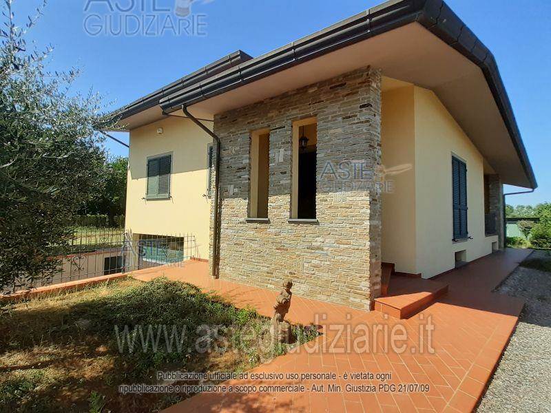 Cascianatermelari: Proponiamo in prima periferia a Perignano asta di una villetta su un unico piano rialzato a cui si ha accesso indipendente dal resede di proprietà. l'immobile è composta da ampio soggiorno, una cucina con tinello, disimpegno, due camere, due bagni, un ripostiglio e due porticati. con la scala interna si accede al locale sottotetto ed al piano seminterrato dove è presente l’ampio garage. bene 5: costituito da garage seminterrato composto da quattro ripostigli ed uno scannafosso . al garage si accede con rampa di accesso interna. Casa 170 mq autorimessa 120mq e giardino privato di 385mq.