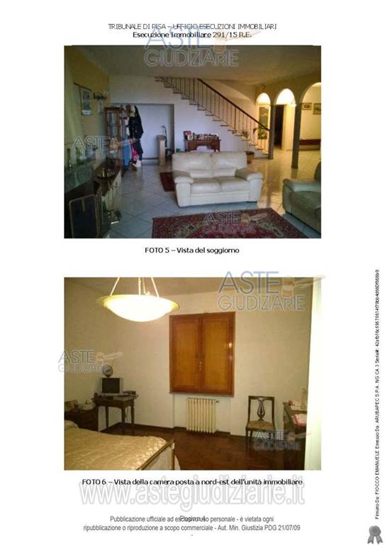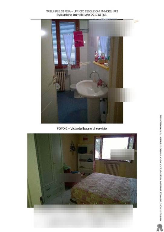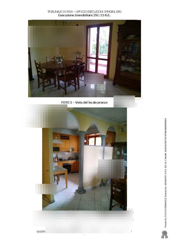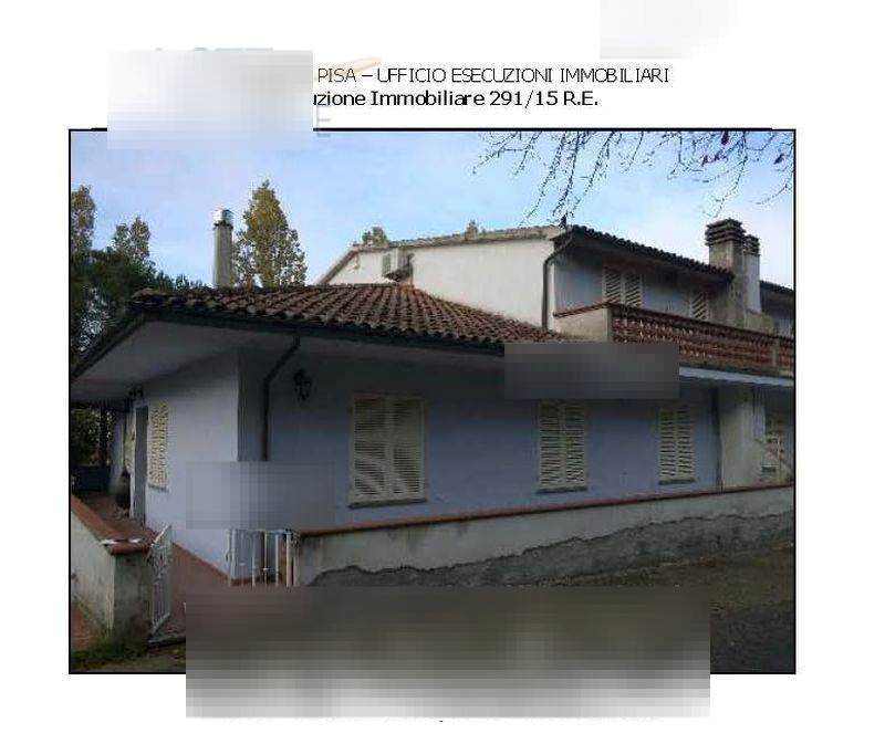 In Peccioli proponiamo asta di bifamiliare, composta, al piano terra, da ingresso, soggiorno, pranzo, cucina, disimpegno notte, due camere e due bagni, oltre a terrazzo e loggiato che circondano su tre lati l'unità immobiliare e, al piano primo, accessibile da scale interne, da ampio disimpegno con accesso a terrazza posta sul lato ovest del fabbricato, bagno, camera dotata di terrazzo posto sul lato est, ed altro locale.