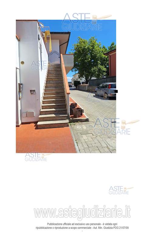 Asta a Santa Maria a Monte Lotto 2 - In Comune di Santa Maria a Monte, località Ponticelli, via Provinciale Francesca piena proprietà di appartamento per civile abitazione posto al piano primo di un più ampio fabbricato condominiale. L’appartamento, al quale si accede direttamente dalla suddetta via tramite resede condominiale e poi da scala e terrazzo comuni all’unità immobiliare adiacente è composto da terrazzo esclusivo, da cui l'ingresso posto sul lato ovest, in soggiorno-pranzo con angolo cottura, disimpegno in zona notte da cui si accede al ripostiglio, al bagno con aereazione forzata, al bagno con finestra, alla camera singola e alla camera matrimoniale; da entrambe le camere si accede al terrazzo esclusivo posto sul fronte del fabbricato prospicente la strada provinciale.