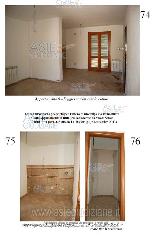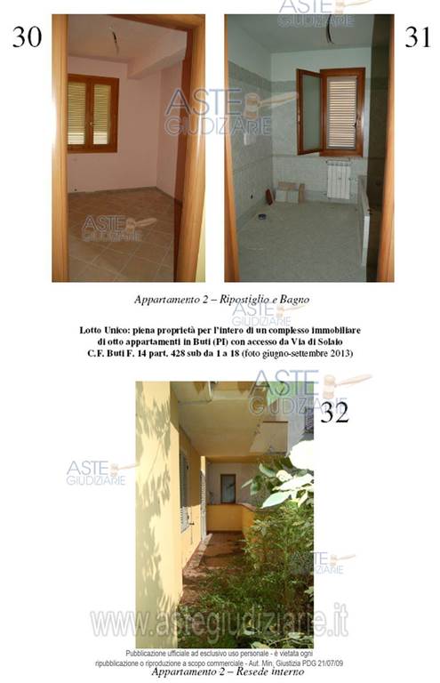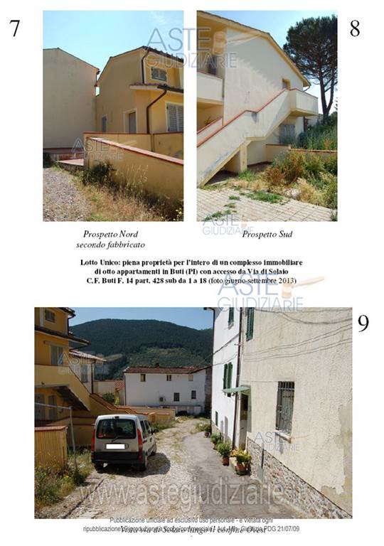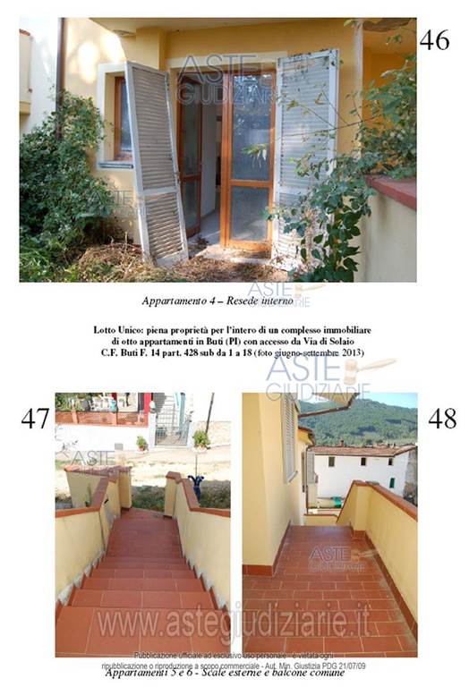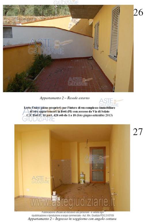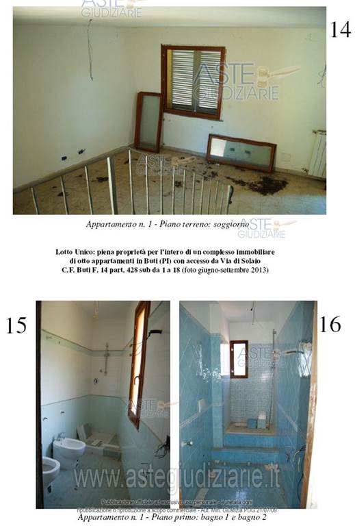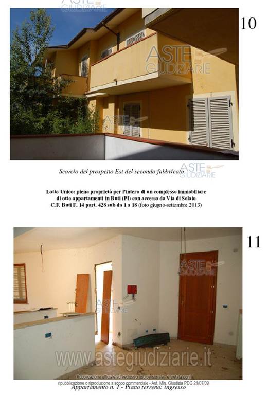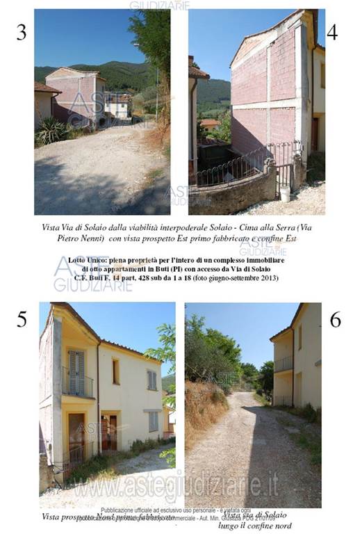 Buti: proponiamo asta di immobile residenziale costituito da un complesso immobiliare con una superficie lorda di 464 metri quadrati, disposto su più livelli e dotato di posti auto. L'immobile è composto da due corpi di fabbrica, per un totale di 9 appartamenti così suddivisi: