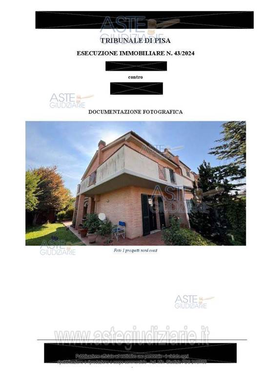 Cascina: proponiamo asta di villetta terra-tetto porzione di più ampio fabbricato, su due piani fuori terra, composto da appartamento su due piani, garage e resede ubicato a cascina (pi) - via del fosso vecchio.
