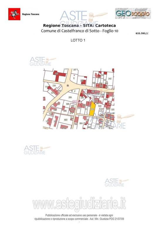 Orentano: Lotto 1 - In Comune di Castelfranco di Sotto, frazione Orentano, via della Repubblica proponiamo asta di villino di un piano fuori terra e seminterrato. Consta di locali accessori al piano seminterrato, quali cantine, servizi e locali tecnici e di locali abitativi al piano rialzato quali salone, cucinotto, tinello, due camere e bagno con vasca e doccia, il tutto per una superficie di circa mq. 110 a piano. Corredato da terrazze su tre lati, l’edificio si presenta completamente delimitato da muro di cinta e corredato di ampio giardino su cui insistono altri manufatti quali rimessa, taverna e ripostiglio.