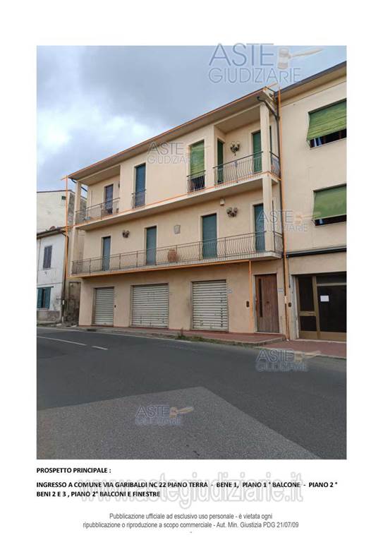 Palaia: proponiamo asta a Forcoli, Corso Garibaldi ai piani primo e secondo di maggior fabbricato, piena proprietà di tre appartamenti per civile abitazione.