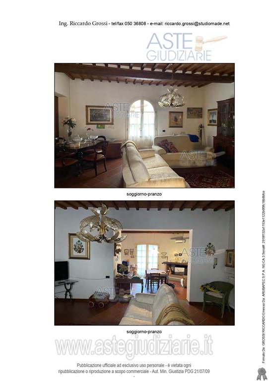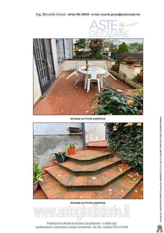 Santa croce sull'arno: nella frazione di staffoli proponiamo asta di villina su due piani fuori terra articolato al piano terra in ingresso, ripostiglio, ampio soggiorno-pranzo, cucina con ripostiglio, ripostiglio sottoscala, scala interna per accedere al piano superiore ed ampia terrazza sul fronte posteriore; al piano primo trovano collocazione n. 3 camere (una con balcone), studio, disimpegno, ripostiglio, bagno e w.c. Si accede all'unità da via del Vino per mezzo di resede esclusivo disposto su due lati dell'abitazione..