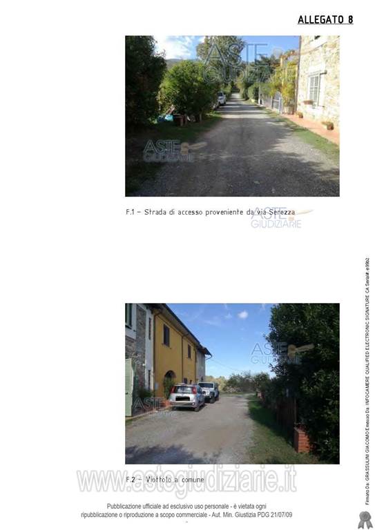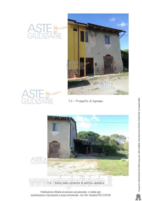 In Vicopisano, località Le Risaie numero civico 6, piena proprietà dell’intero di fabbricato in parte ad uso di casa colonica rurale e in parte ad uso magazzino con circostante resede pianeggiante di forma pressoché rettangolare per una superficie scoperta di mq. 932 circa.