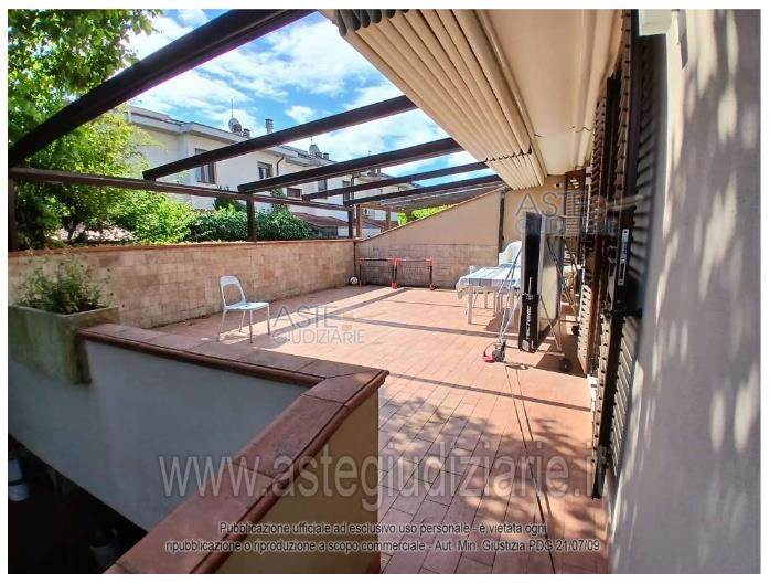 Abitazione facente parte di un più ampio fabbricato di tipo bifamiliare, disposto su più piani cui piano seminterrato, terra, primo e sottotetto.L’unità è composta, al piano terreno da loggia, ingresso, locale cucina/pranzo/soggiorno, disimpegno, bagno, lavanderia, locale armadi, e un’ampia terrazza; al piano primo cui si accede da scala interna, da disimpegno, bagno, n. 3 camere, ripostiglio, n. 2 balconi e un’ampia terrazza; infine al piano sottotetto accessibile sempre dalla suddetta scala da mansarda, bagno, cucina e terrazzo. L’unità è inoltre corredata di un resede esterno esclusivo che circonda l’abitazione su tre lati.