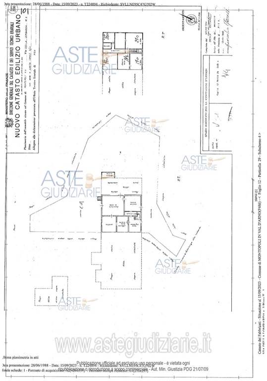 Trattasi di appartamento in ASTA di porzione di maggior fabbricato di due piani fuori terra, sviluppantesi ai piani terreno e primo (quest'ultimo a tetto), posto in Comune di Montopoli in Val d'Arno (PI) Via della Lombarda n°3 da cui ha accesso tramite resede esclusivo, e composto al piano terra, primo fuori terra, da ingresso, scala di accesso al piano primo, cucina con accesso anche dall'esterno e ripostiglio sottoscala ed al piano primo, secondo fuori terra, da disimpegno, altra cucina, soggiorno con accesso da locale senza finestra, tre camere e bagno-w.c., della superficie lorda complessiva di mq 195 circa, oltre a cantina, locale ad uso sgombero (senza finestra) e lavatoio al cui interno è stato realizzato un bagno-w.c., posti al piano terreno della superficie lorda complessiva di mq 85 circa, latrina, posta adiacente al fabbricato lungo il lato Nord, pollaio con concimaia, posti al piano terreno distaccati dal fabbricato lungo il lato Est, della superficie lorda complessiva di mq 13 circa, e resede esclusivo interamente recintato unitamente ai beni nn°2, 3 e 4, della superficie di mq 750 circa.