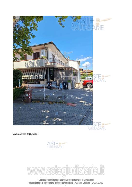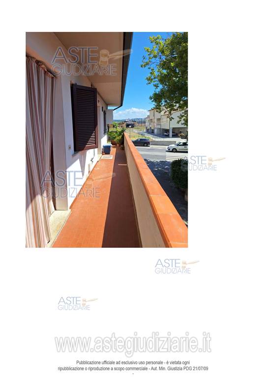 Asta a Santa Maria a Monte Lotto 2 - In Comune di Santa Maria a Monte, località Ponticelli, via Provinciale Francesca piena proprietà di appartamento per civile abitazione posto al piano primo di un più ampio fabbricato condominiale. L’appartamento, al quale si accede direttamente dalla suddetta via tramite resede condominiale e poi da scala e terrazzo comuni all’unità immobiliare adiacente è composto da terrazzo esclusivo, da cui l'ingresso posto sul lato ovest, in soggiorno-pranzo con angolo cottura, disimpegno in zona notte da cui si accede al ripostiglio, al bagno con aereazione forzata, al bagno con finestra, alla camera singola e alla camera matrimoniale; da entrambe le camere si accede al terrazzo esclusivo posto sul fronte del fabbricato prospicente la strada provinciale.